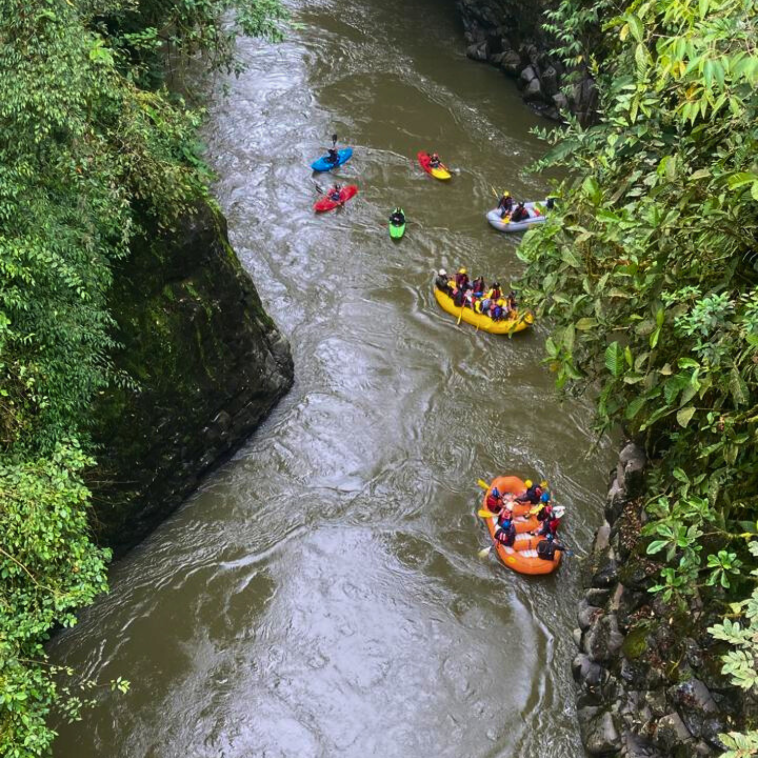 Navegamos por un tramo tranquilo del río, con aguas más suaves y paisajes espectaculares. Perfecto para quienes quieren conectarse con la naturaleza, reírse en equipo y crear recuerdos inolvidables.